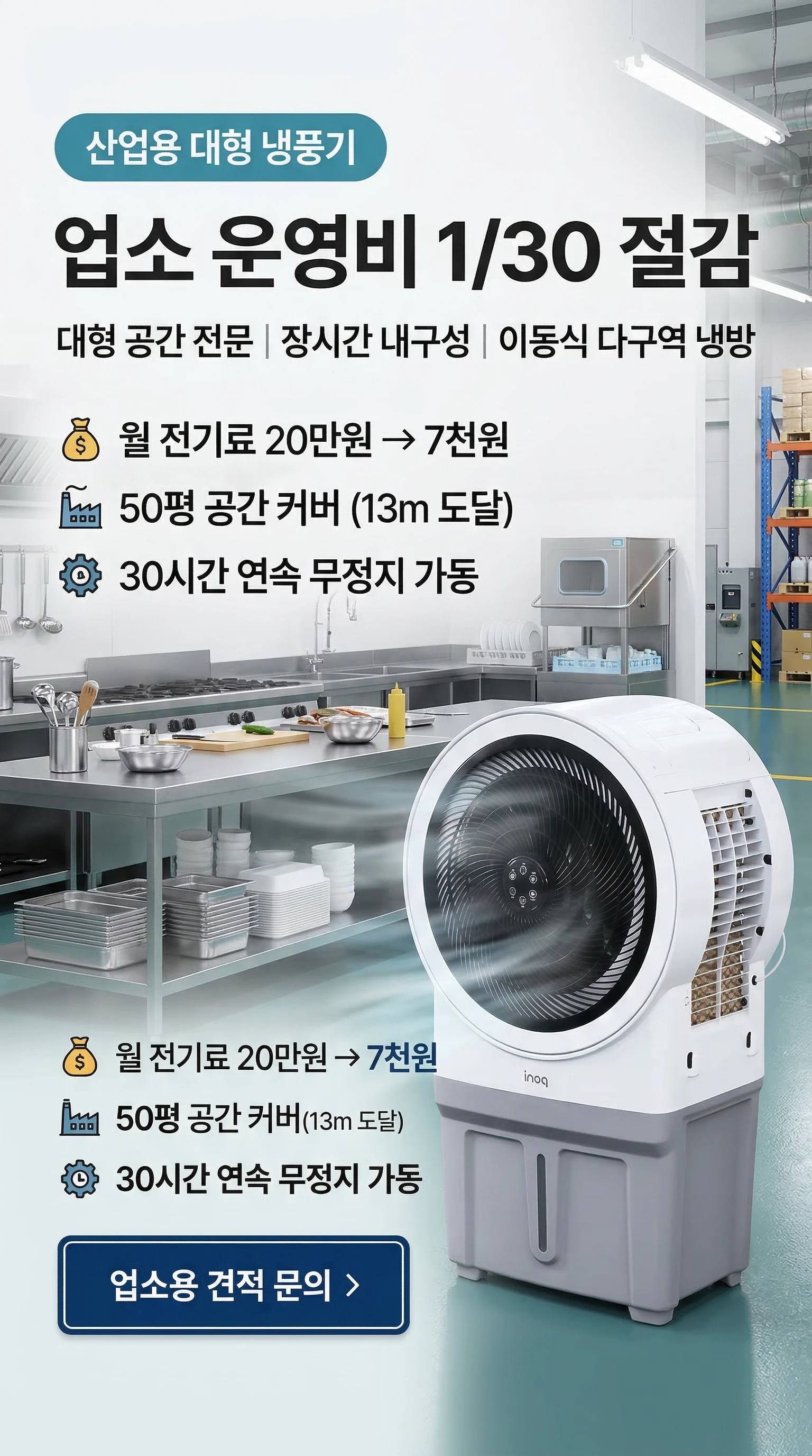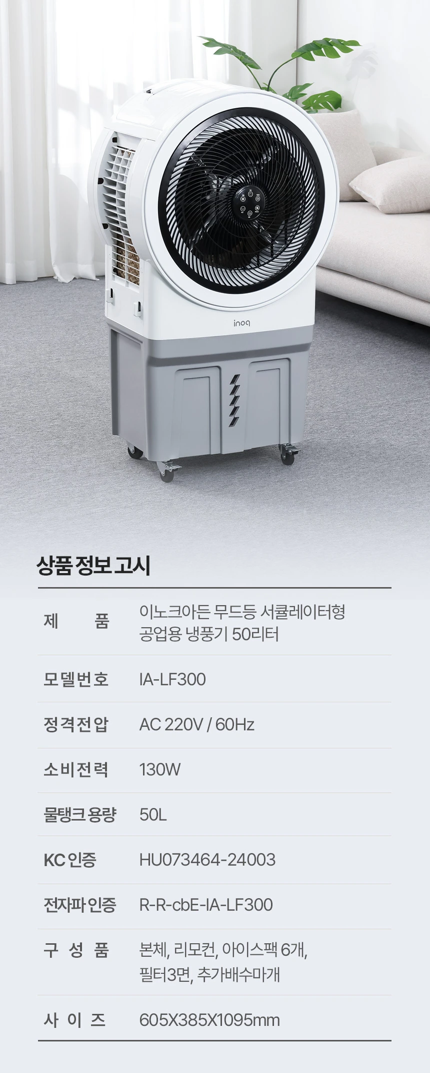 이노크아든 대용량냉풍기 50L 거실 업소용 식당 매장 사무실 에어쿨러 IA-LF300