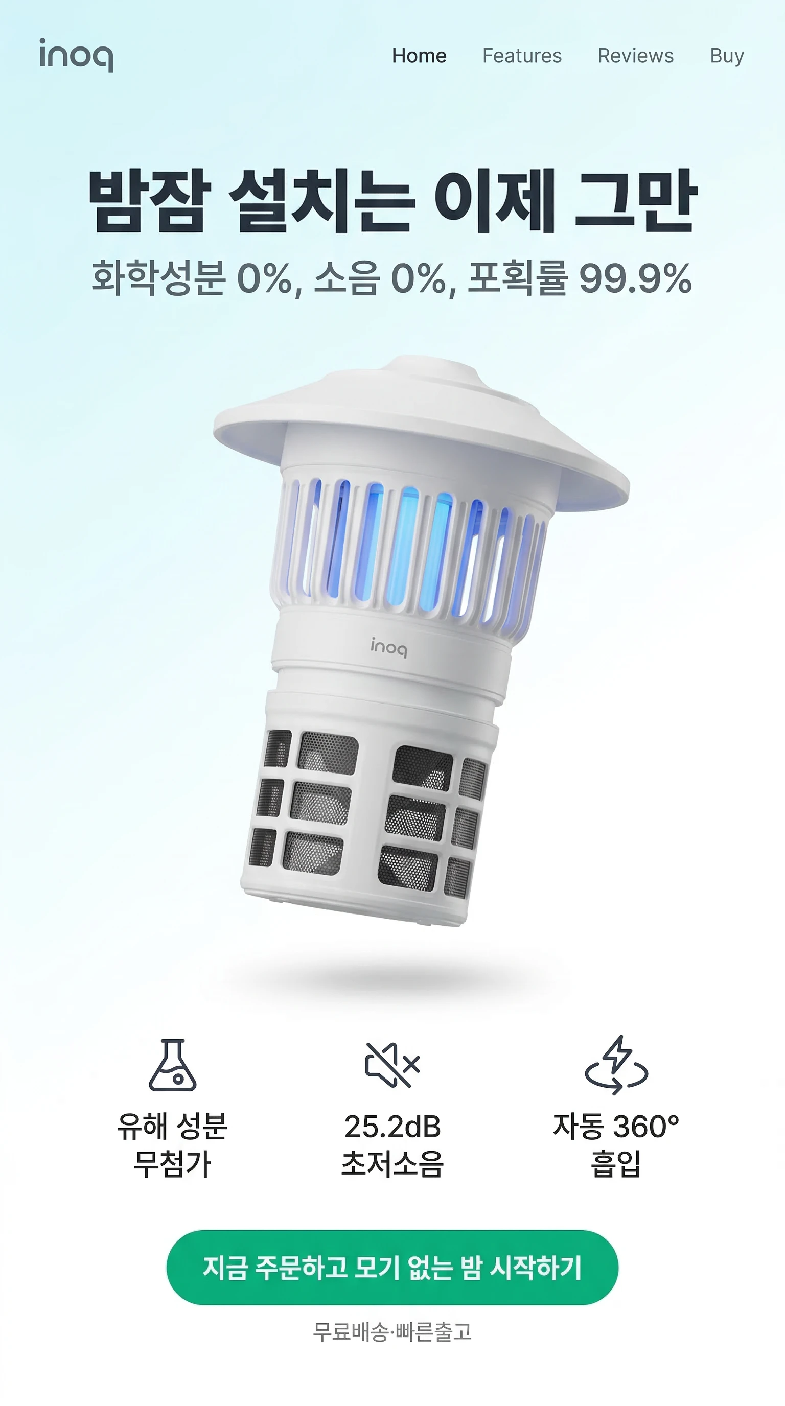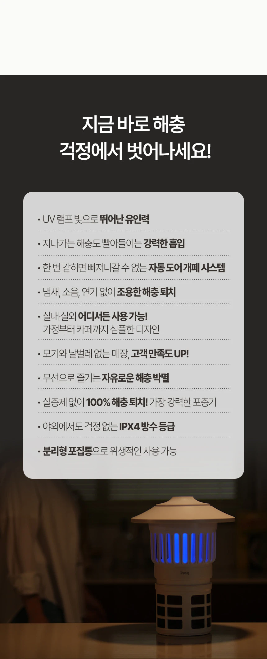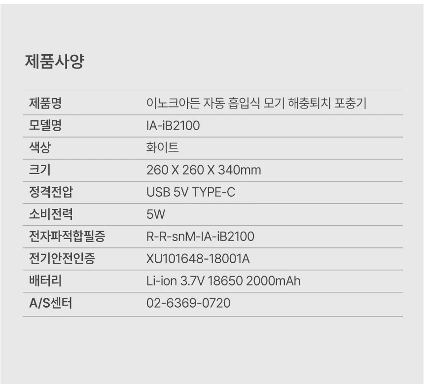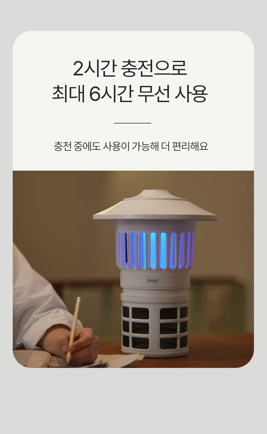 이노크아든 해충퇴치기 무선모기 흡입식 UV 포충기 무드등 IA-IB2100 캠핑용 가정용 저소음 광촉매