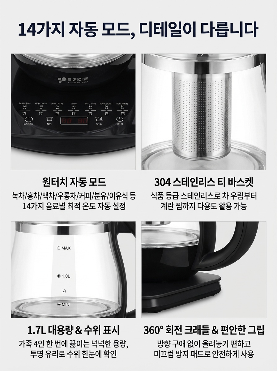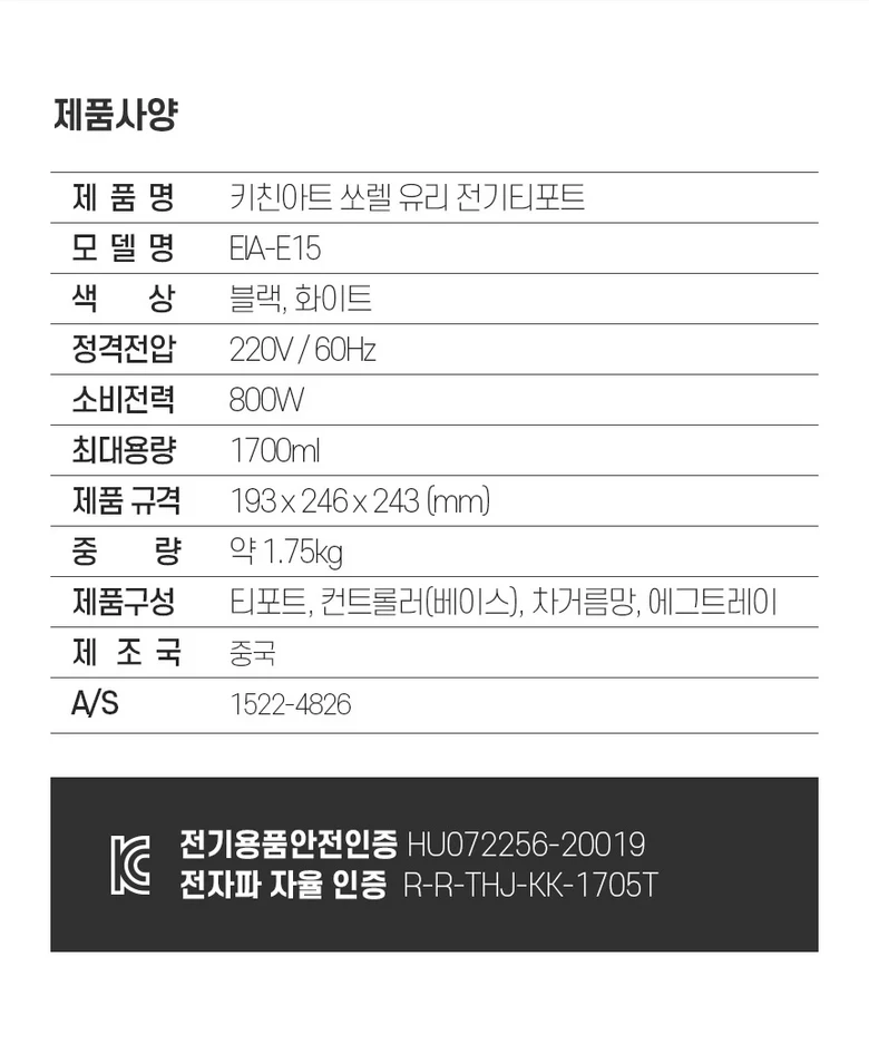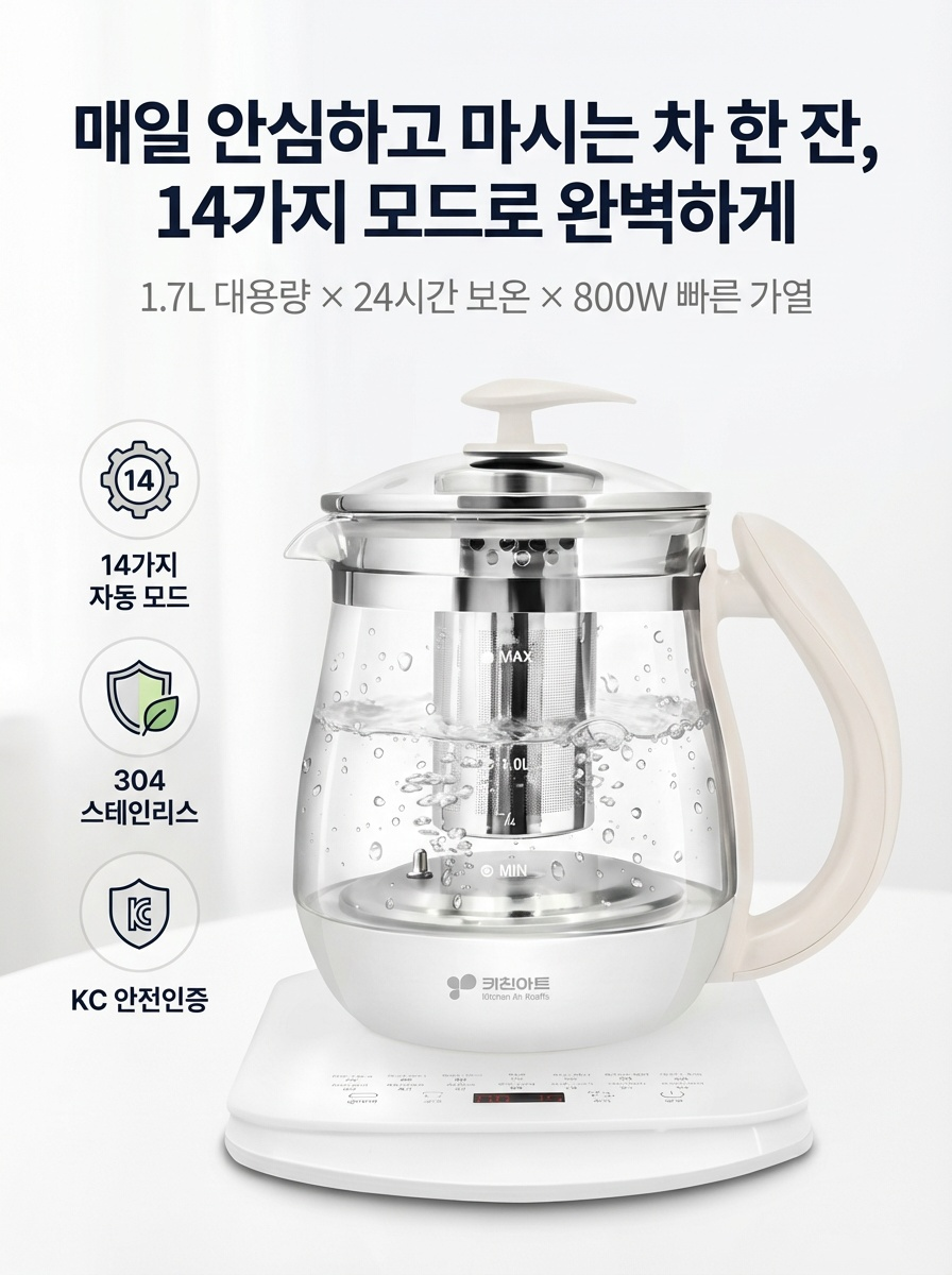 키친아트 멀티 티포트 분유포트 1.7L 차탕기 약탕기 계란찜기 포함 KIA-EK15