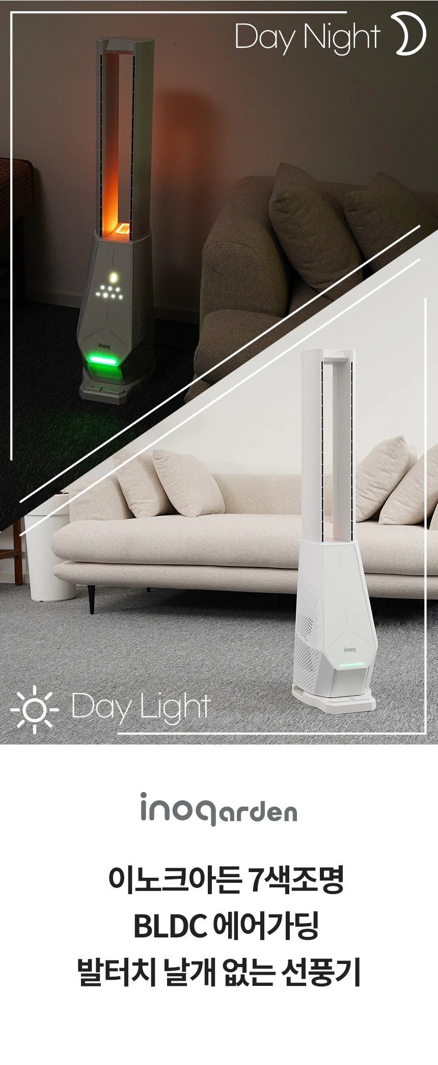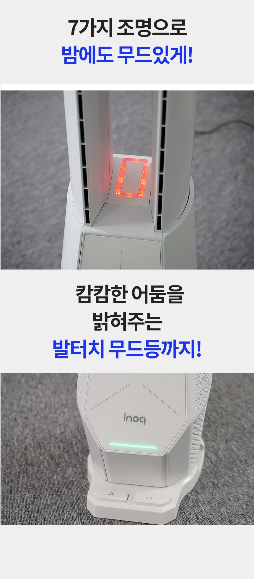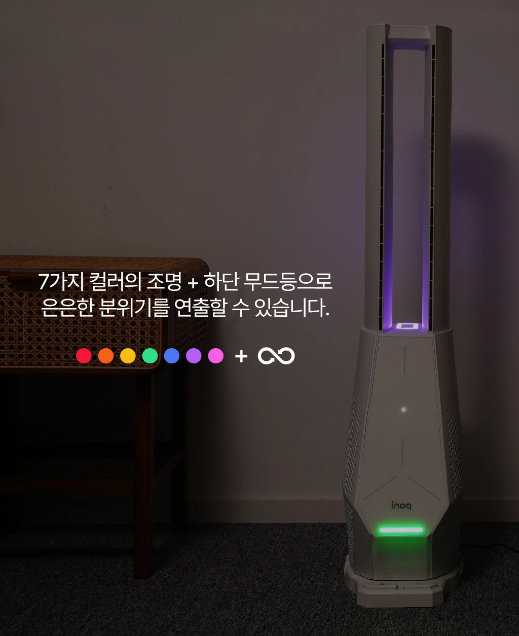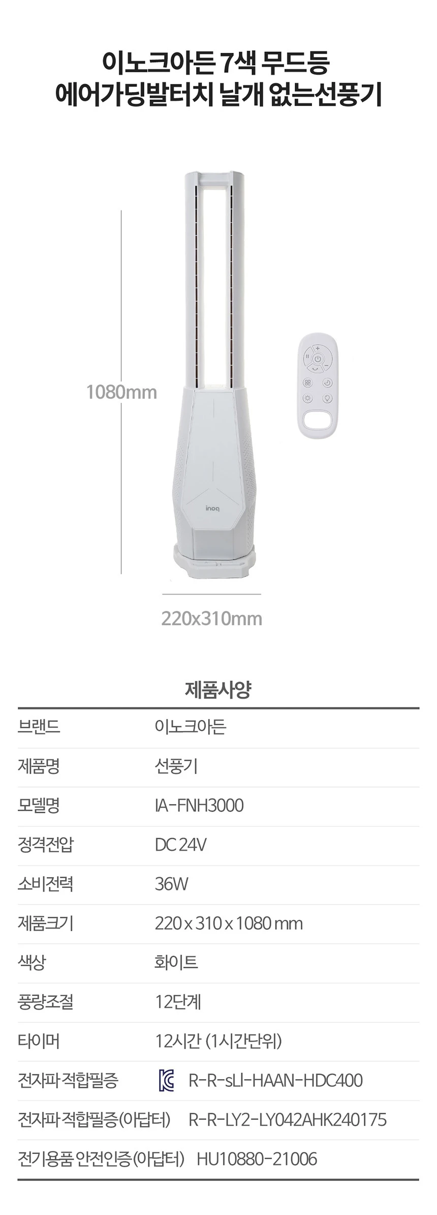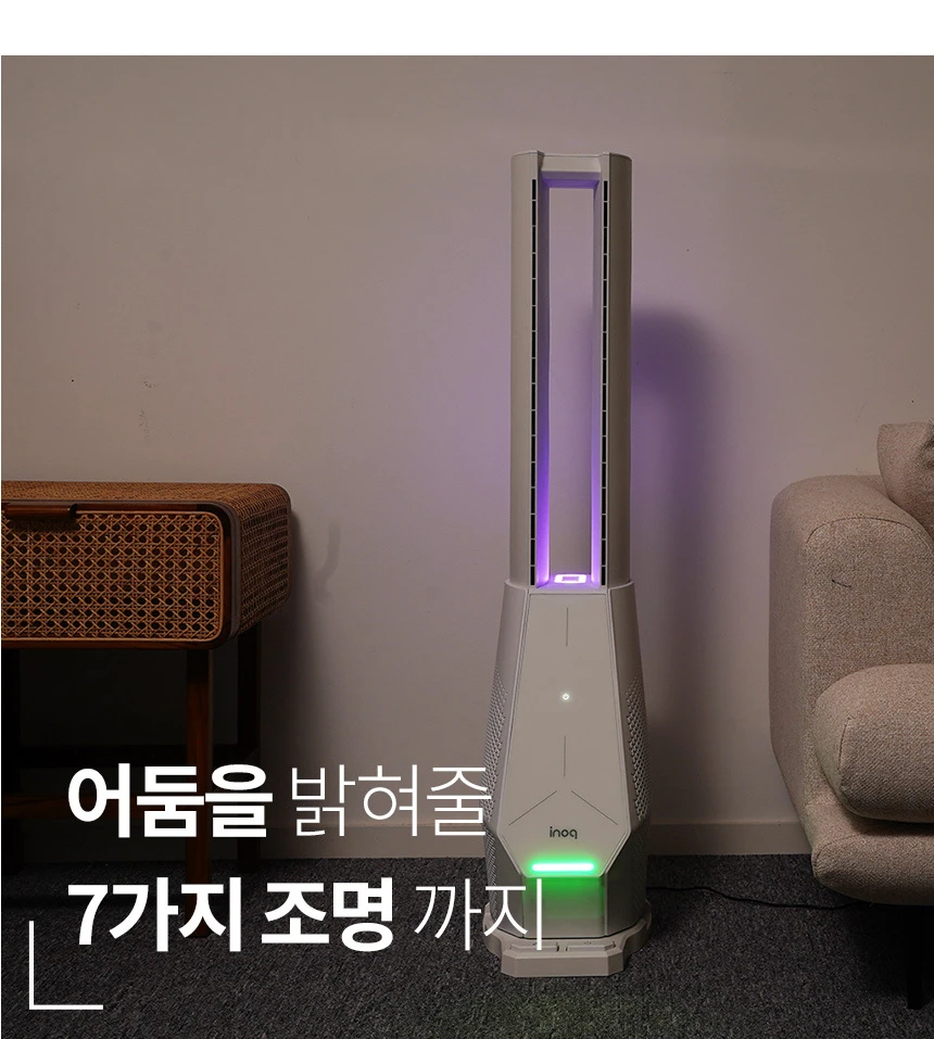 이노크아든 날개없는 무소음 선풍기 스탠드 타워팬 아기 거실 무드등 IA-FNH3000