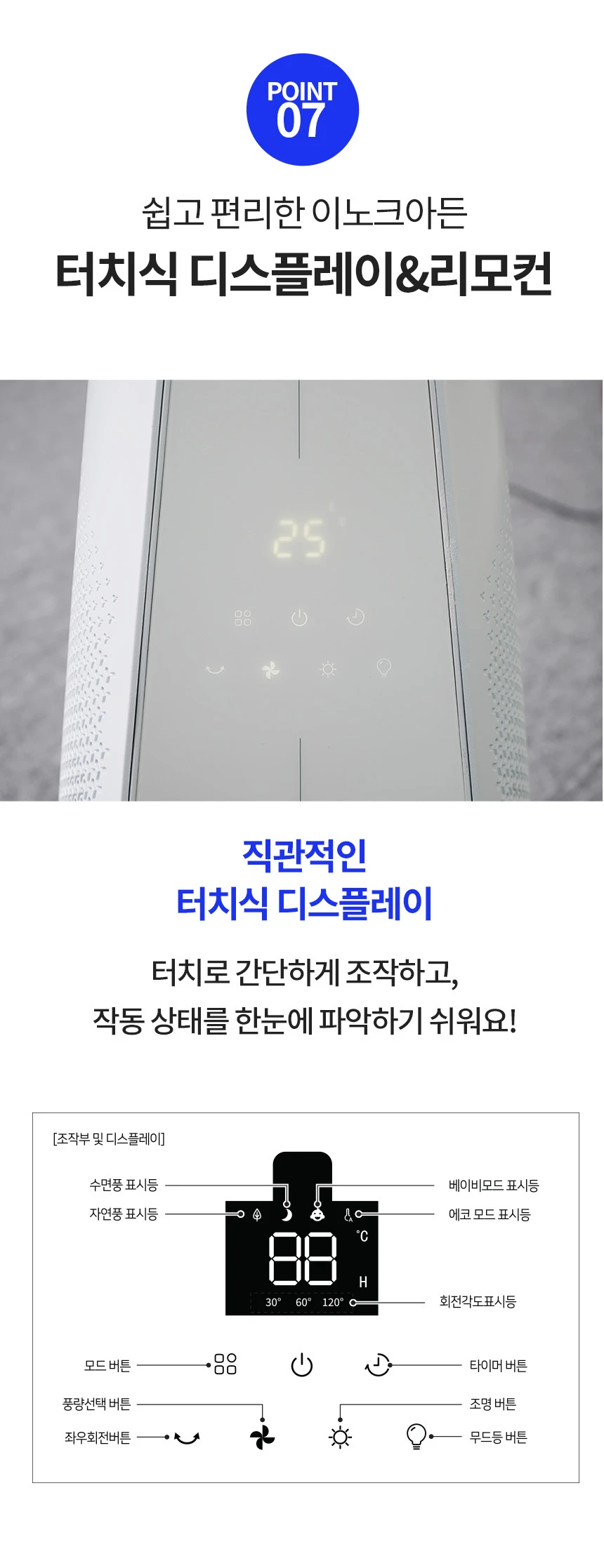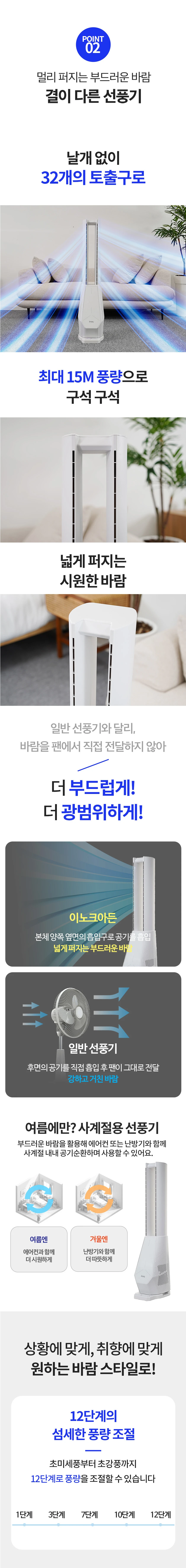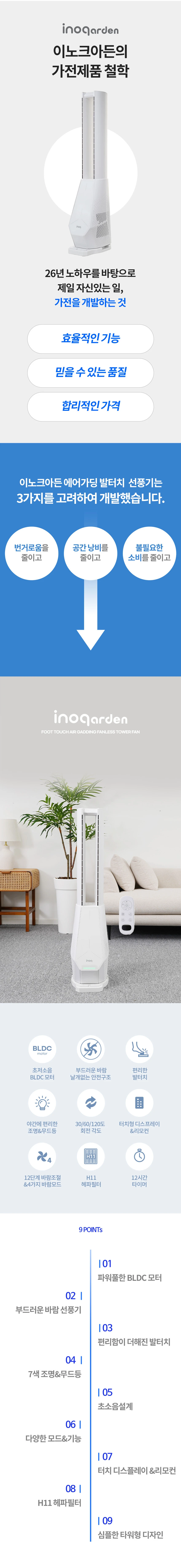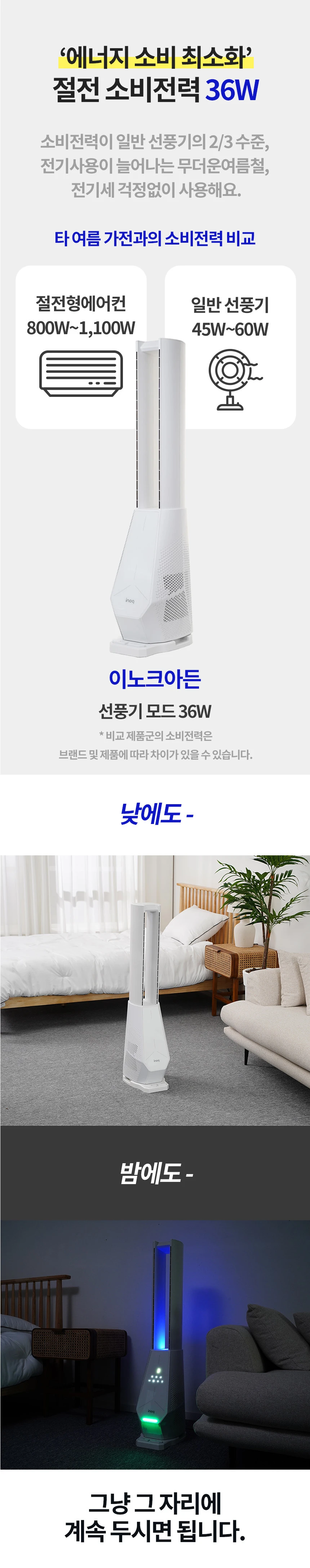 이노크아든 날개없는 무소음 선풍기 스탠드 타워팬 아기 거실 무드등 IA-FNH3000