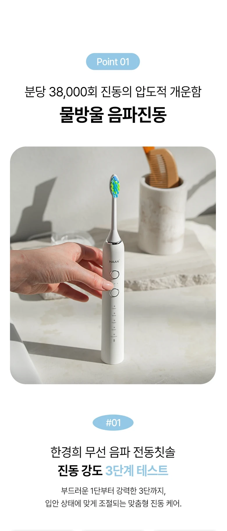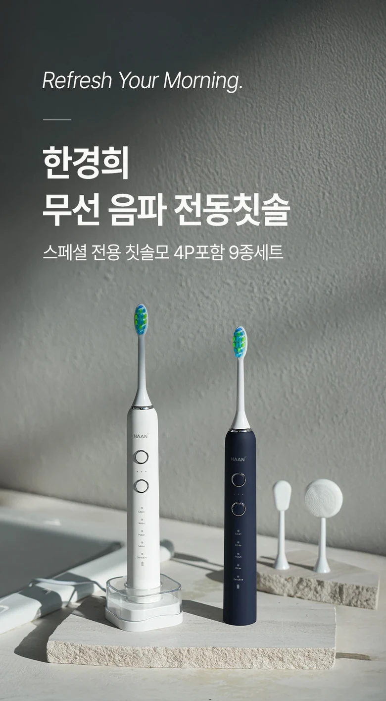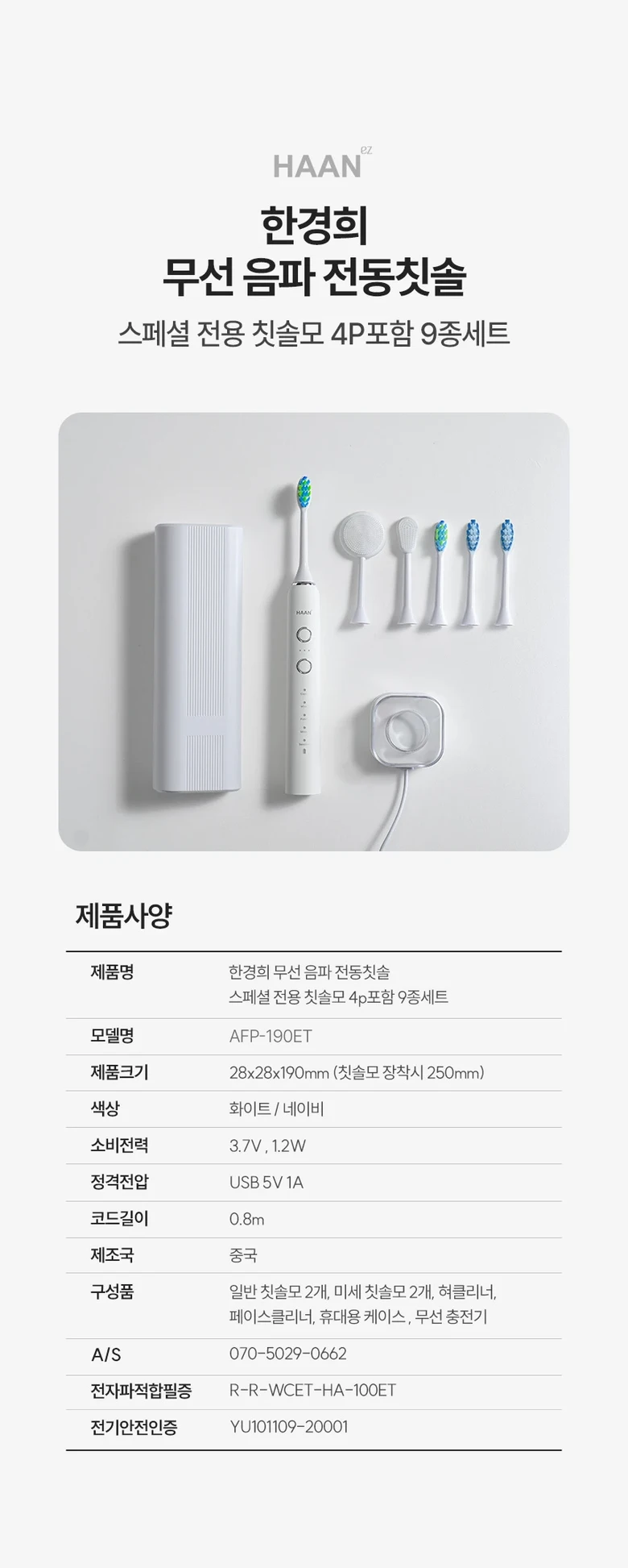 한경희생활과학 무선 음파전동칫솔 완전방수 휴대용 케이스 포함 9종세트 HA-100ET