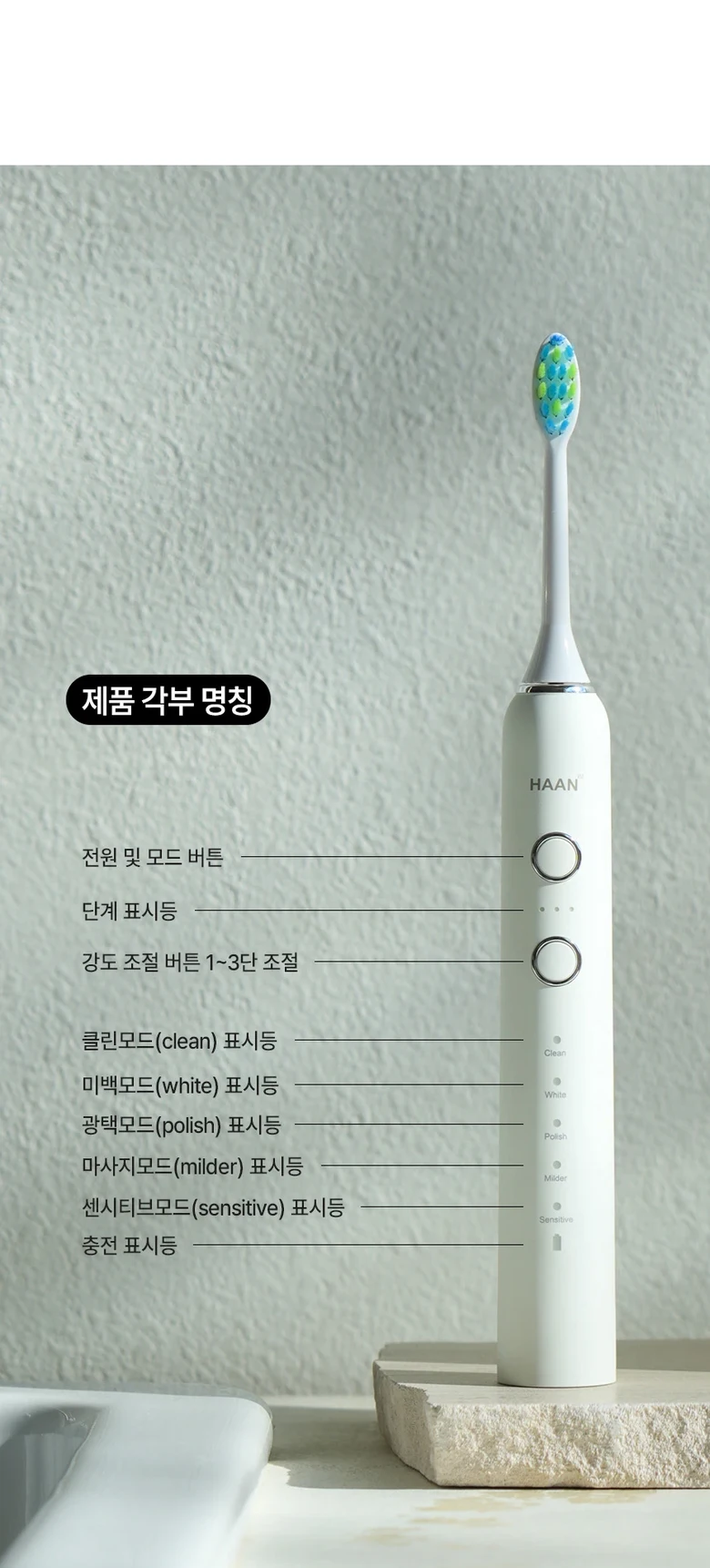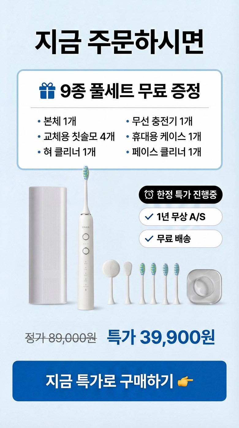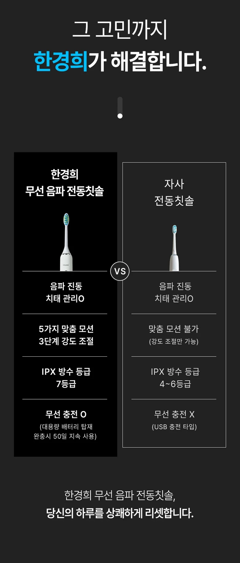 한경희생활과학 무선 음파전동칫솔 완전방수 휴대용 케이스 포함 9종세트 HA-100ET