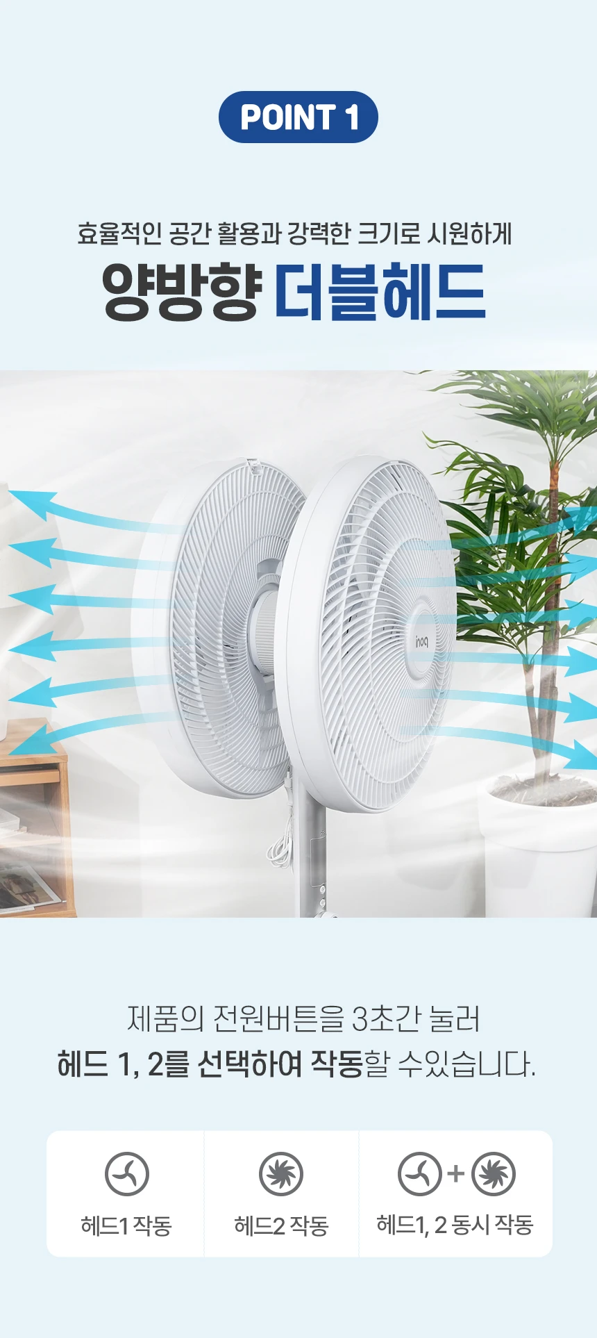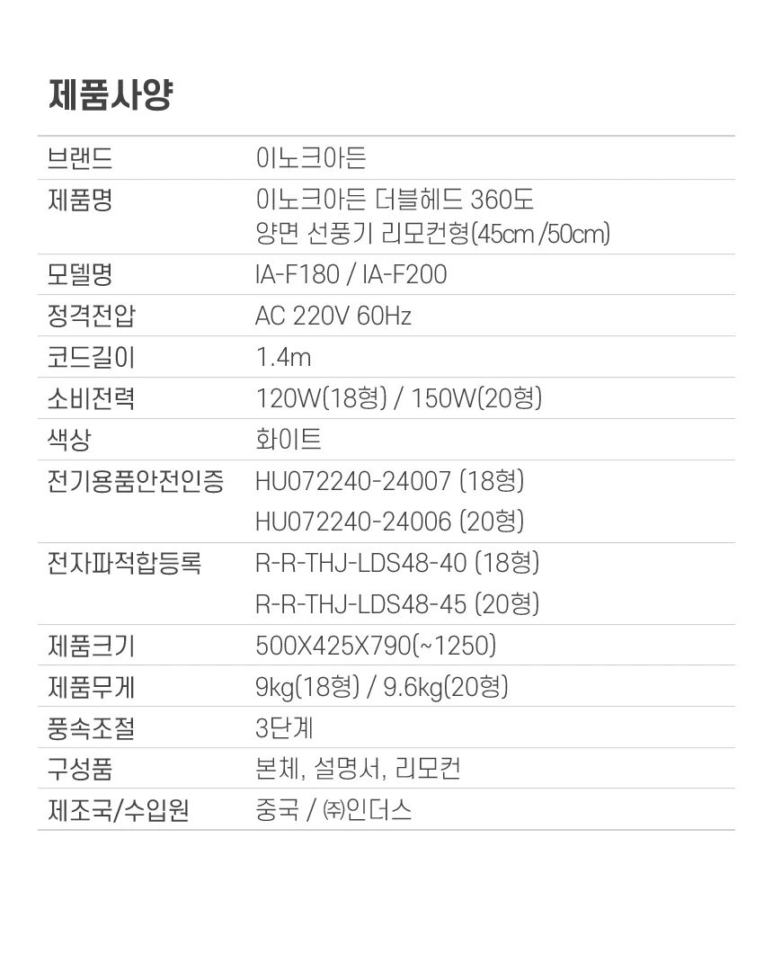이노크아든 양면 더블헤드 대형 업소용선풍기 거실 스탠드선풍기 좌석형 18인치 20인치