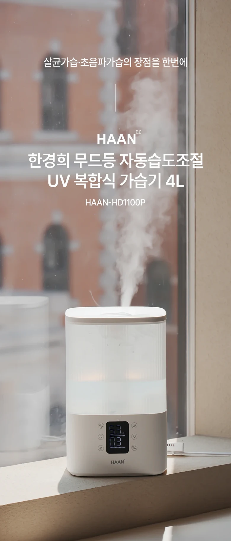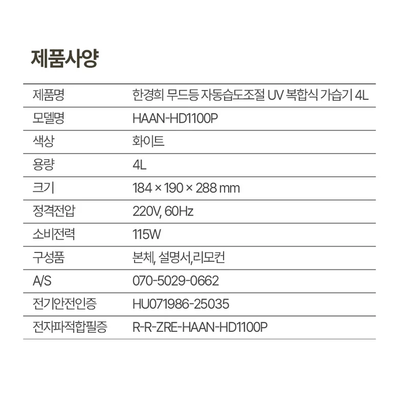 한경희 복합식 가습기 4L UV살균 자동습도조절 수면모드 무드등 리모컨 HD1100P