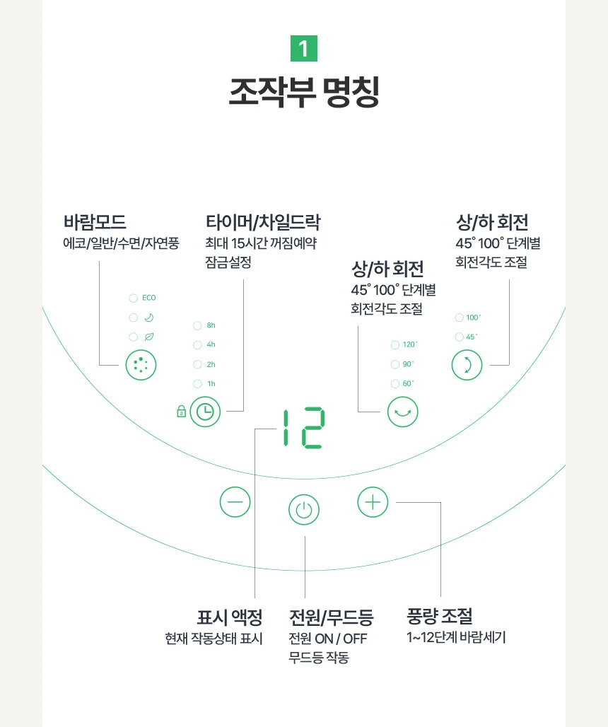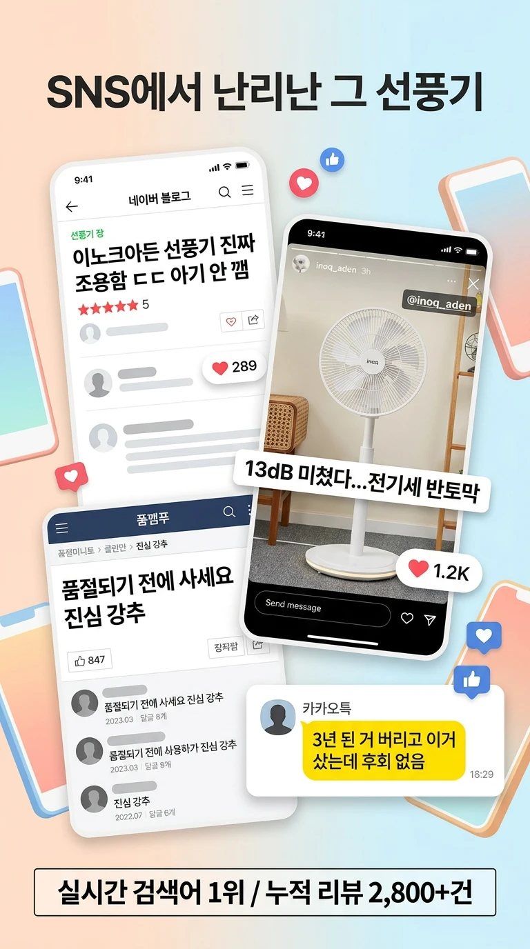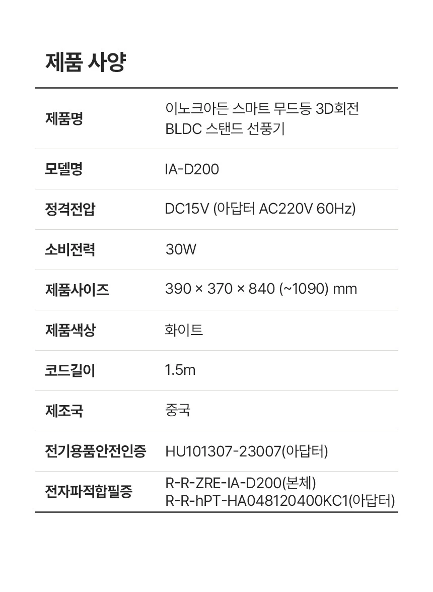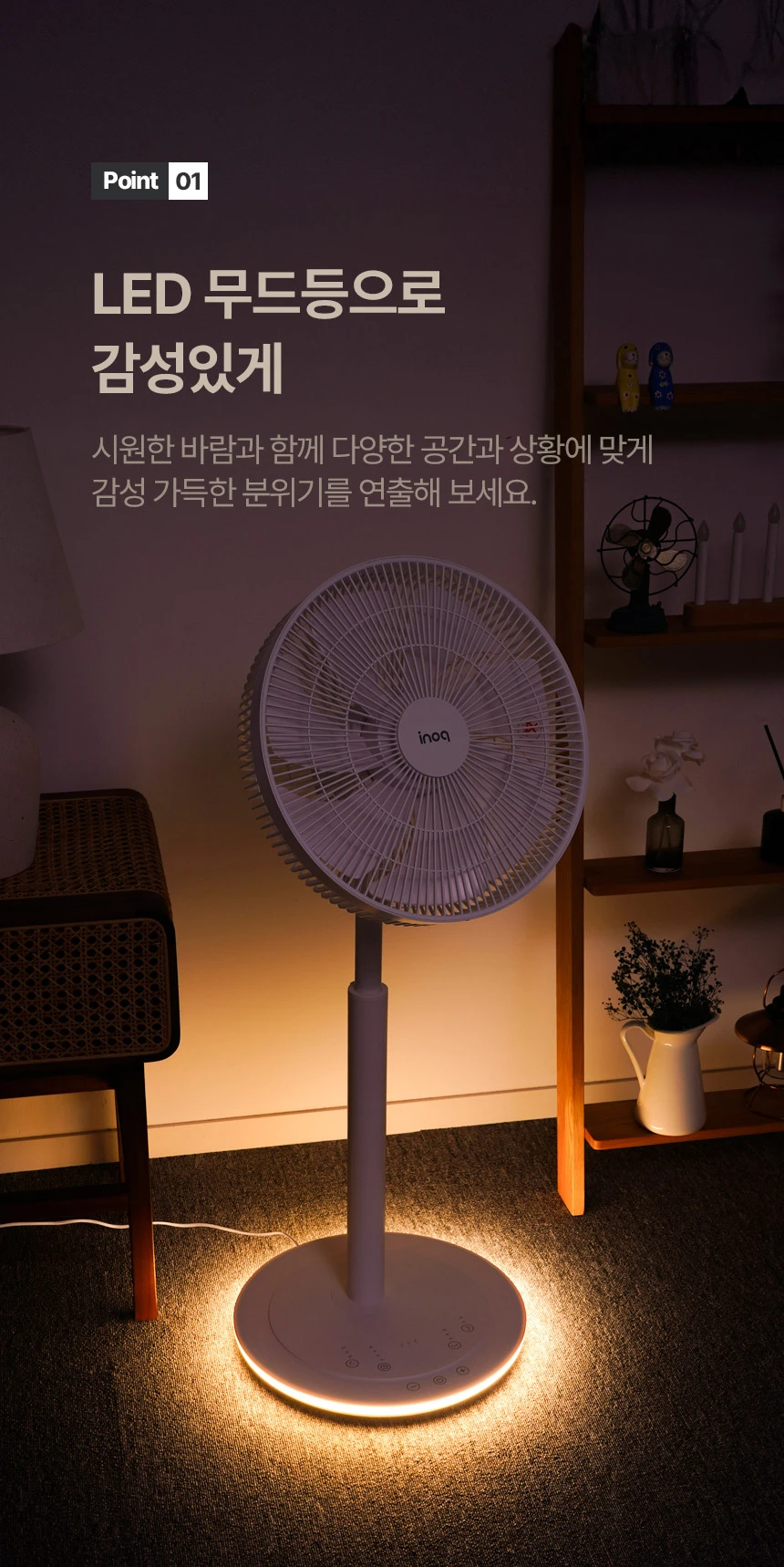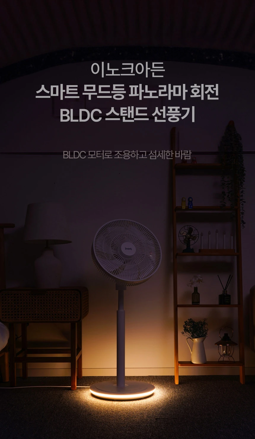 이노크아든 BLDC 스탠드 유선 선풍기 저소음 입체회전 무드등 거실 가정용 IA-D200