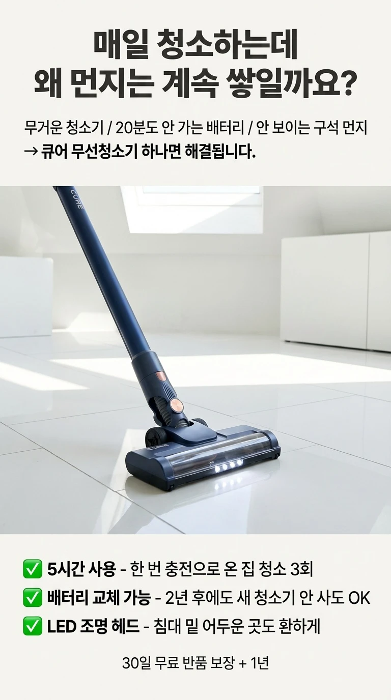 쿠오레 COVA-S BLDC 원룸 소형 가벼운 무선청소기 거치대포함