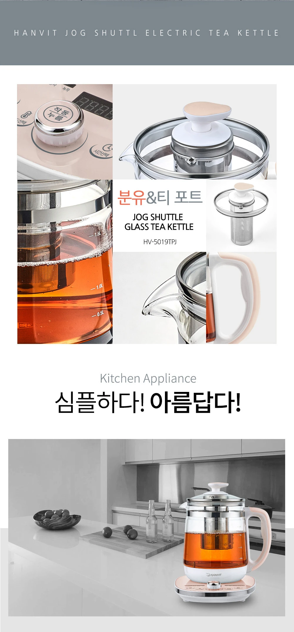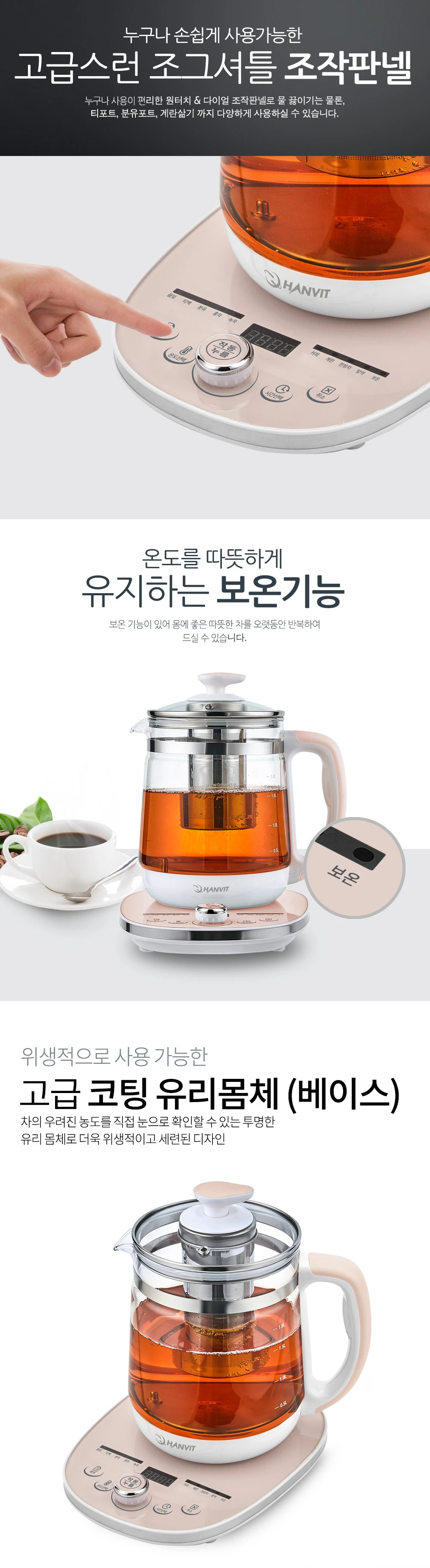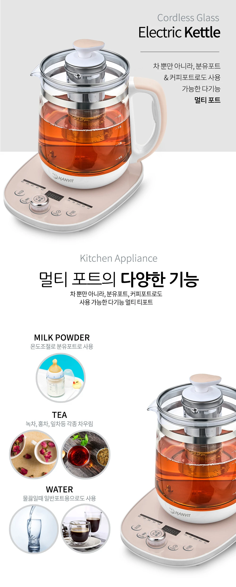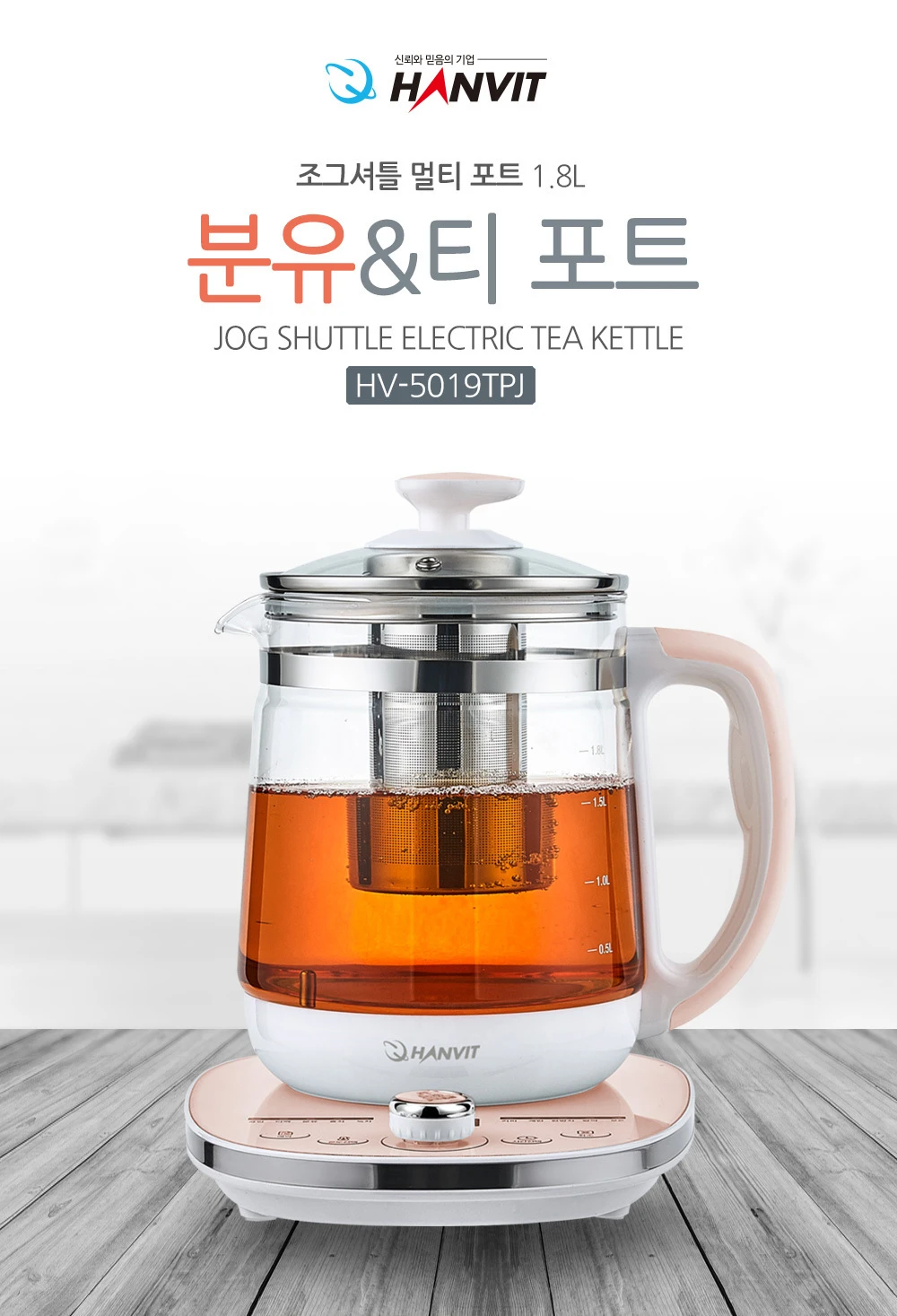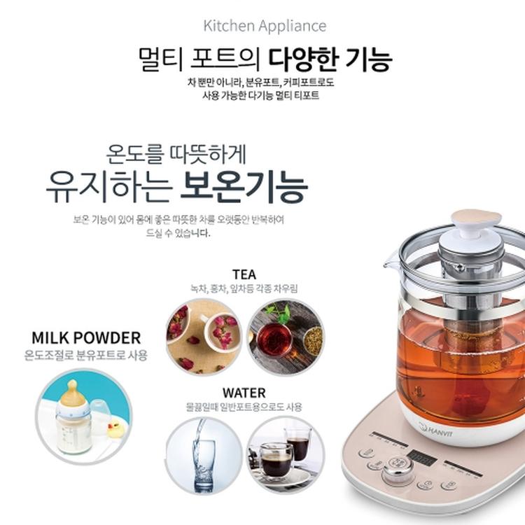 한빛 온도조절 아기분유포트 보온 유리 대용량 멀티 티포트 전기주전자 HV-5019TPJ