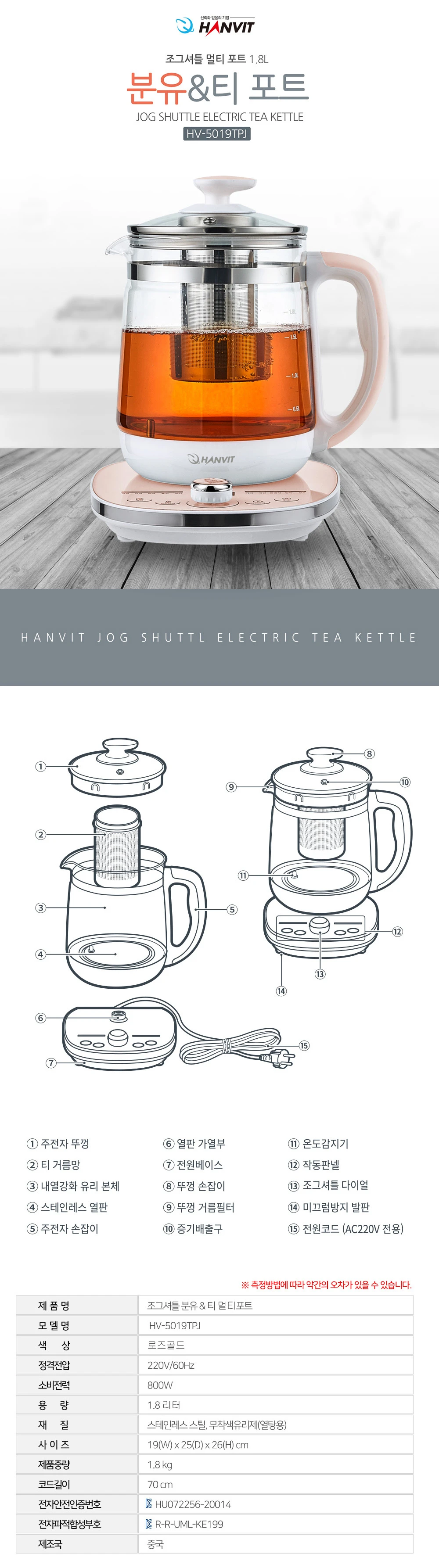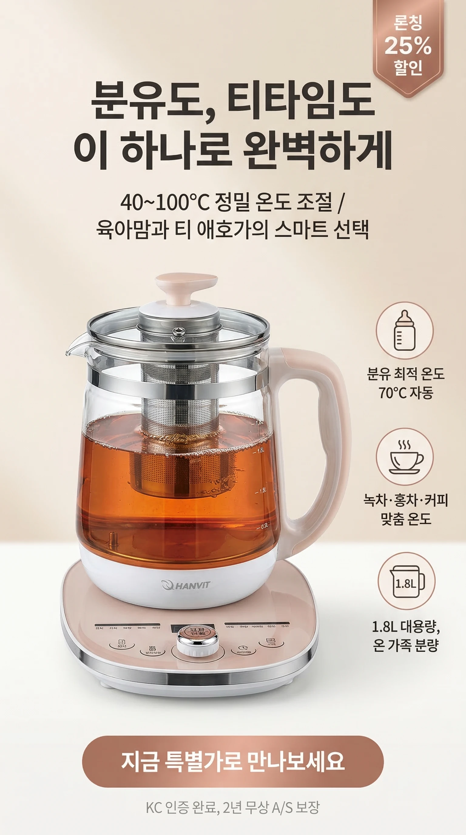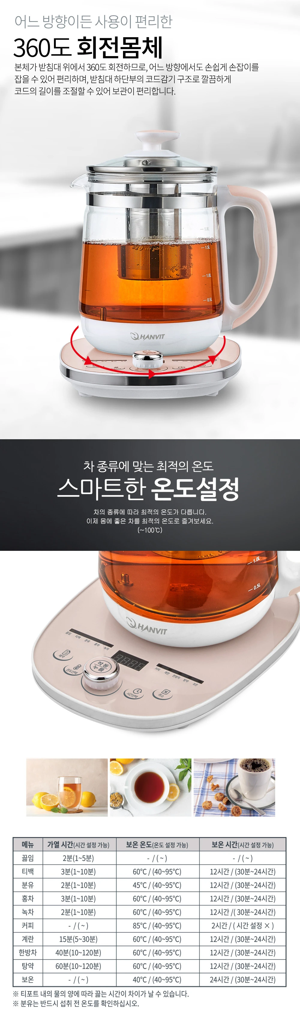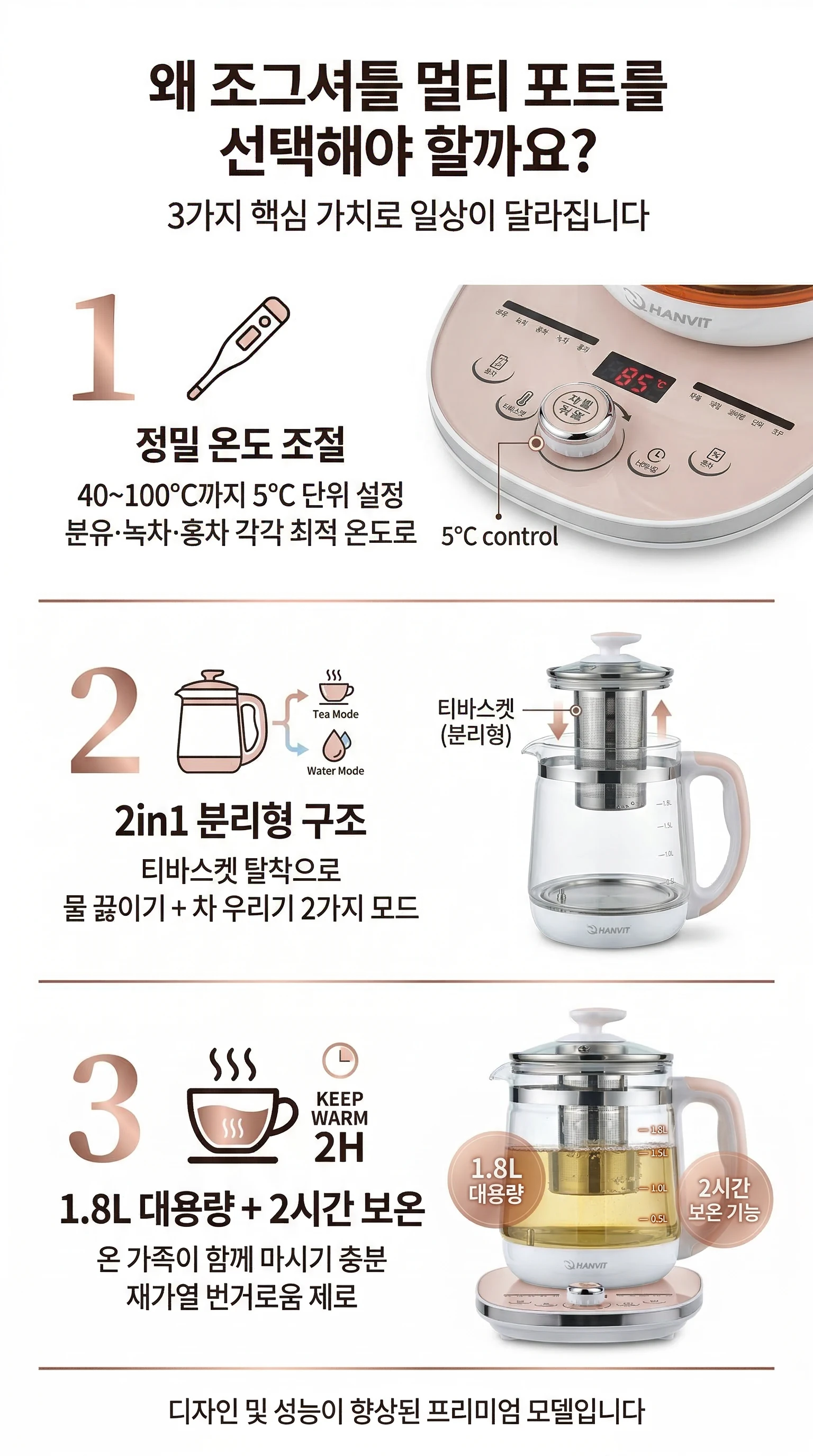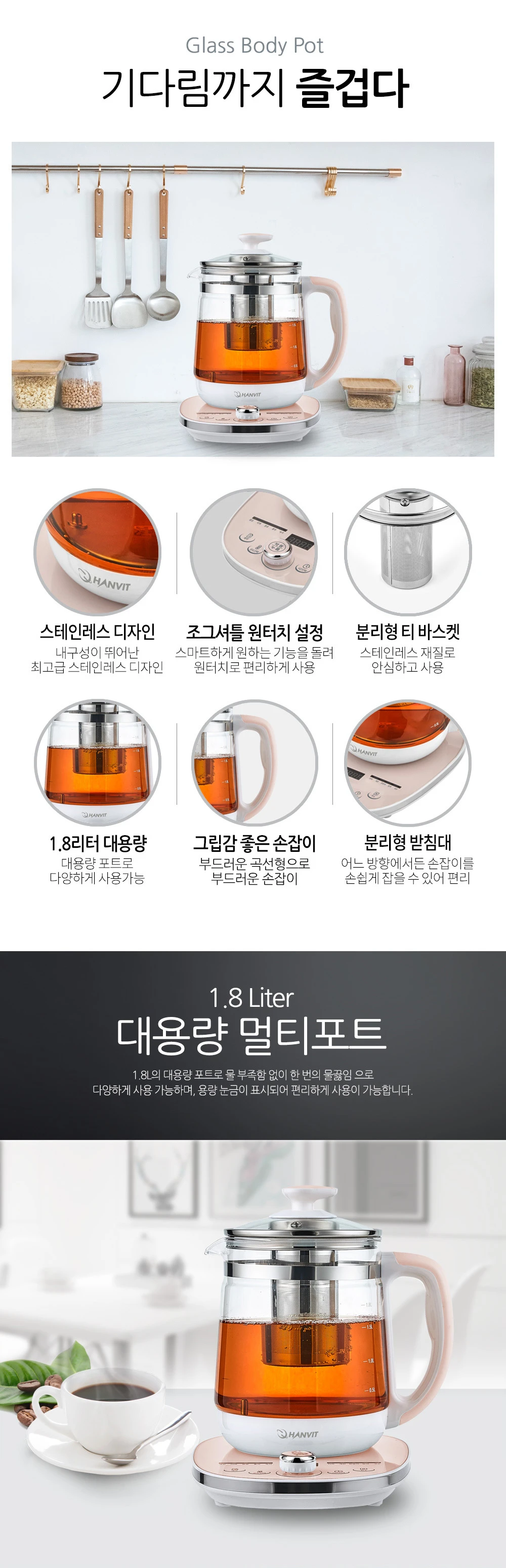 한빛 온도조절 아기분유포트 보온 유리 대용량 멀티 티포트 전기주전자 HV-5019TPJ